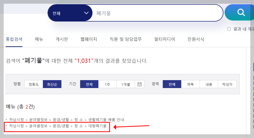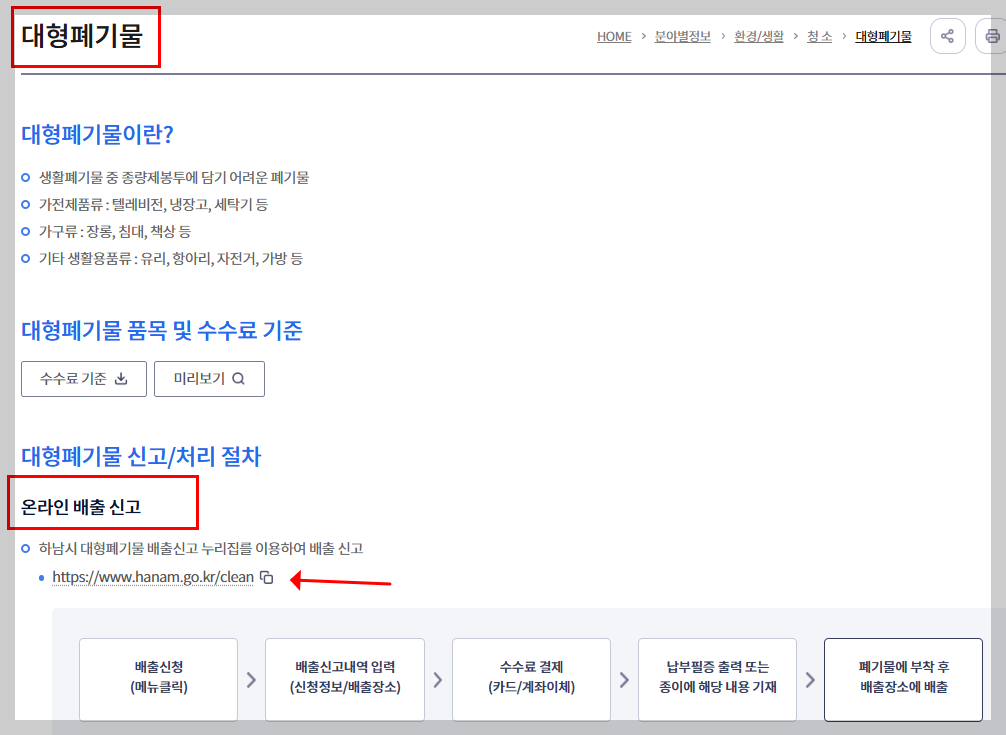 - 본인 거주지의 구청 또는 시청 홈페이지에 접속해 ‘대형폐기물’ 검색