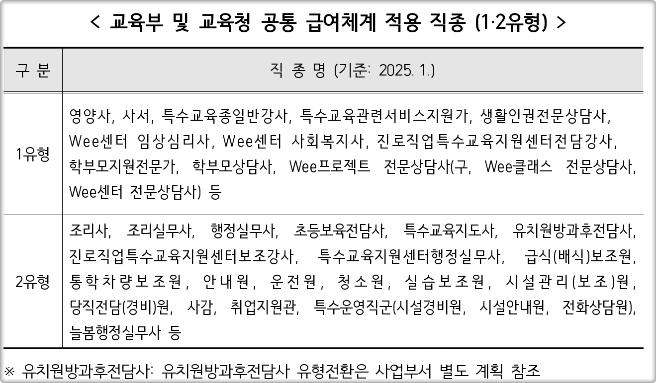 🔻2025 경기도 교육공무직 유형별 직종명🔻