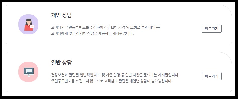 건강보험 관련하여 민원을 상담할 수 있는 게시판은 총2곳이 있습니다.