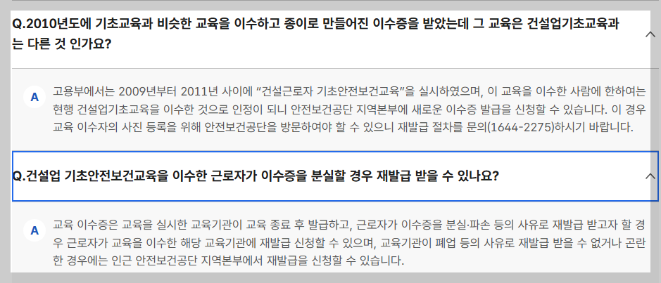 - 한 번 이수하면 평생 유효하므로, 이수 기록만 잘 관리하면 불필요한 재교육 없이 현장 출입이 가능하다.