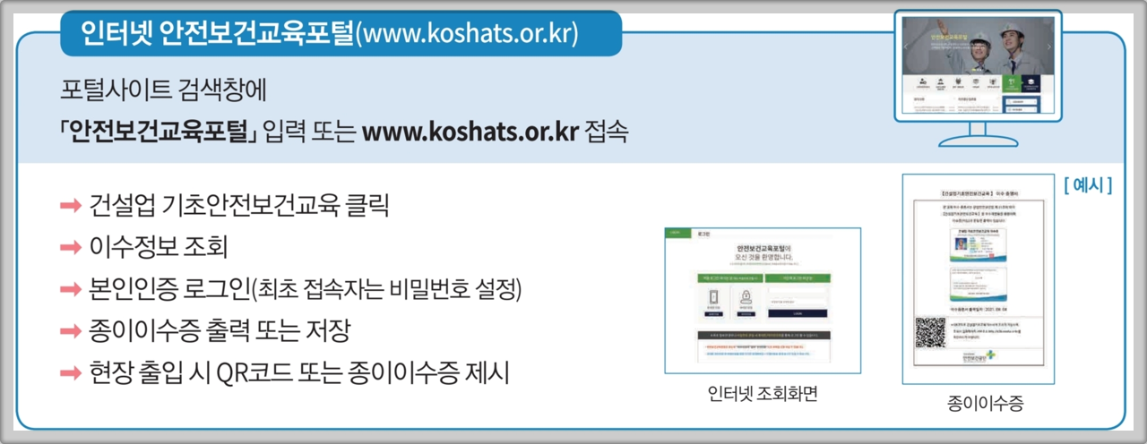 건설현장에 투입되기 전, 기초안전보건교육 이수증 인터넷 조회와 출력, 그리고 발급까지 미리 준비해두시기 바랍니다~!
