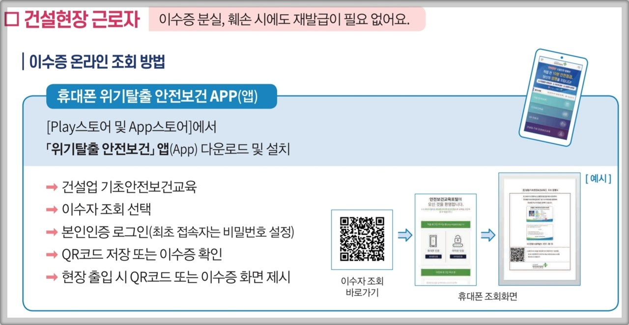 📌 스마트폰으로 바로 확인하려면 ‘위기탈출 안전보건’ 앱에서 이수자 조회를 이용하세요!