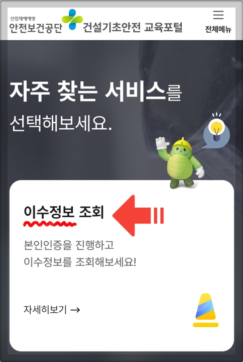 건설현장 입장 전, 이수 여부 확인은 공식포털에서 정확하게 확인해보시기 바랍니다.