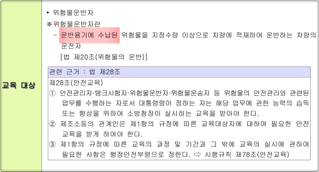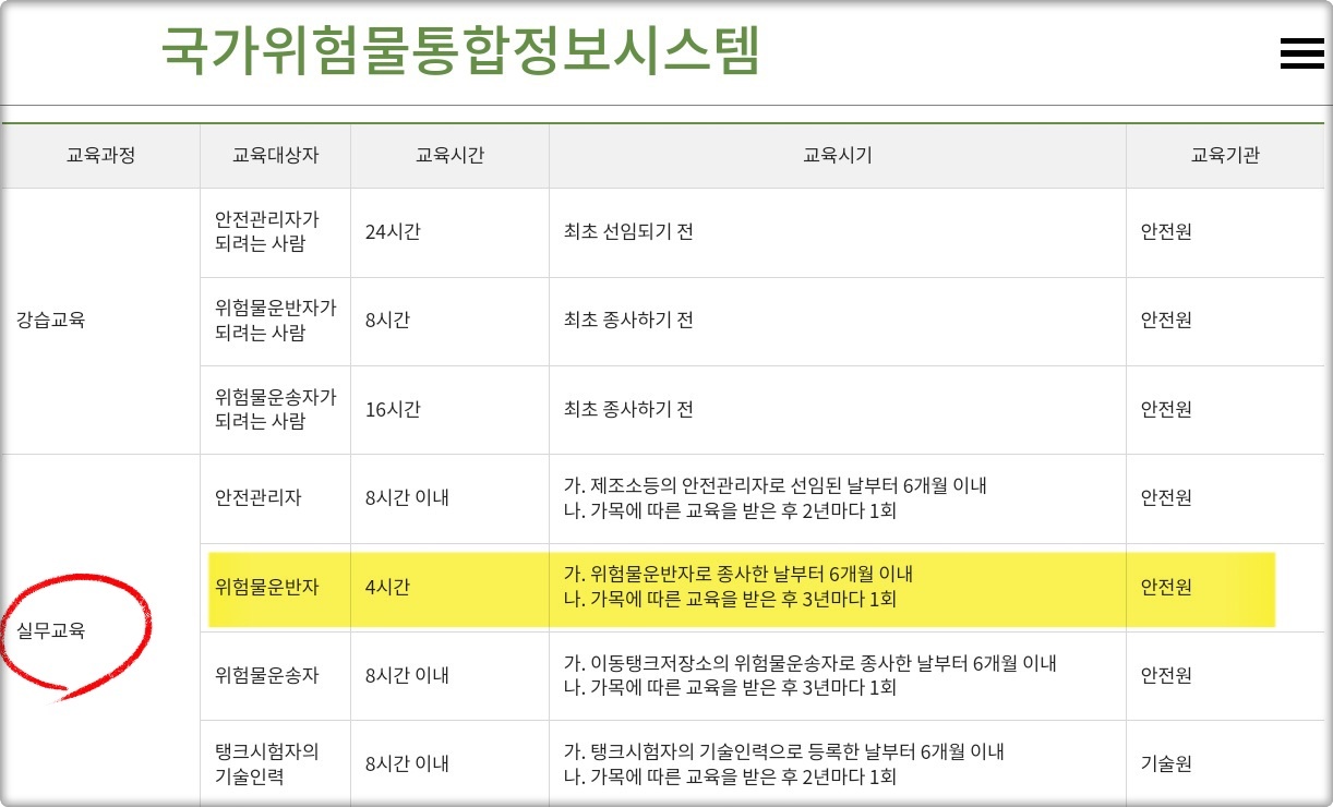 '위험물 운반자'로 일하고 있다면 법으로 정해진 "실무교육"을 꼭 들어야 한다는 점 아시지요?