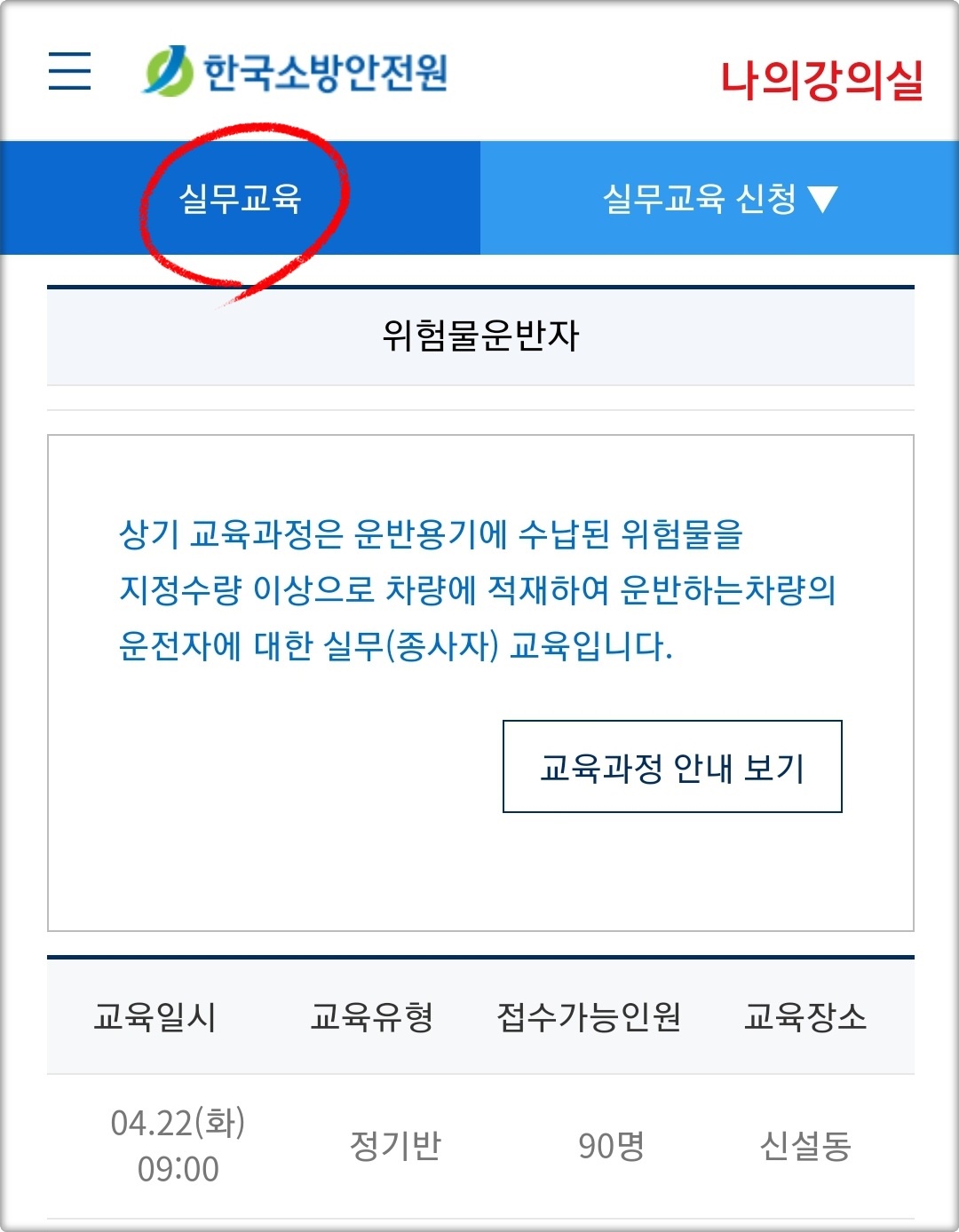 위험물 운반자 실무교육은 반드시 본인이 직접 참석해야 하는 '소집교육'이라 일정이 한정적입니다.