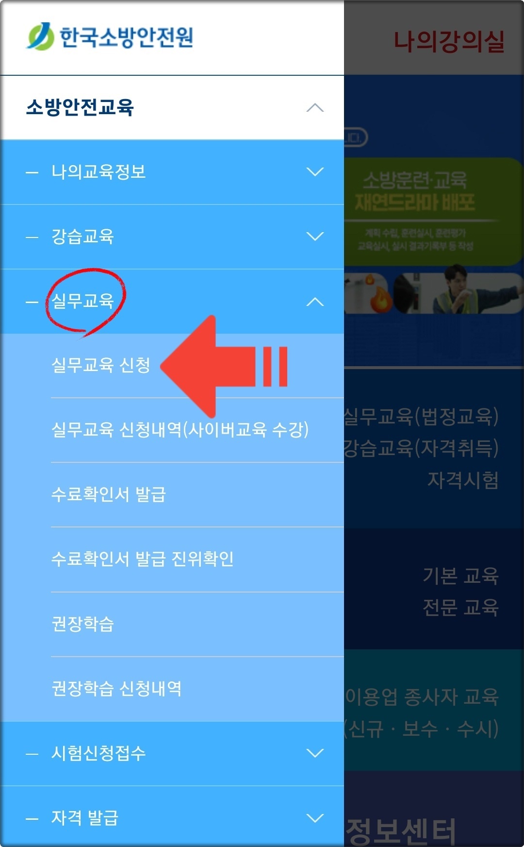 실무교육 신청은 '한국소방안전원 공식 홈페이지'에서 할 수 있습니다.