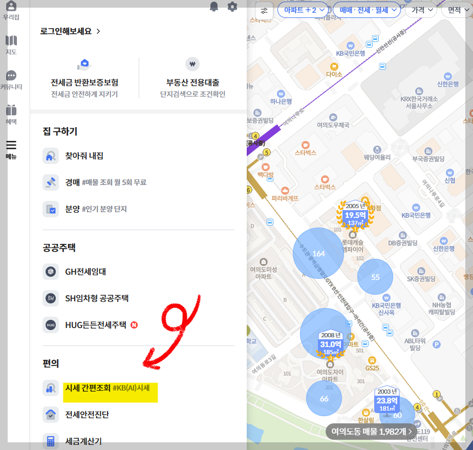 KB국민은행이 운영하는 부동산 플랫폼으로, 실거래가와 함께 AI 기반의 예측 시세도 제공하는 점이 가장 큰 특징입니다.