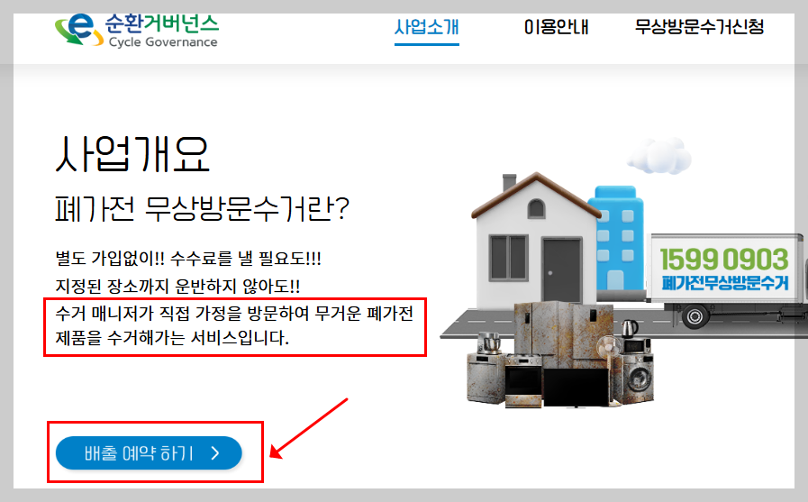 신청만 하면 수수료 없이, 기사님이 직접 방문해 수거까지 도와주는 꽤 실속 있는? 제도가 되겠습니다.