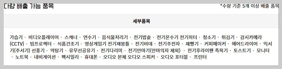 ✔ 다량 배출 가능한 소형 가전 (5개 이상 시)