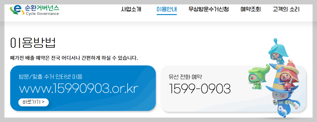 가전 수거 신청은 지정 플랫폼인 순환거버넌스에서만 가능하니, 온라인으로 간편하게 예약하시기 바랍니다.