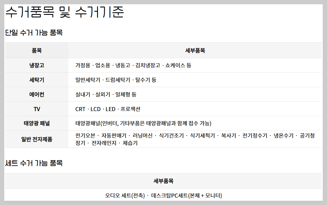 2. 부산대형가전 무료수거 가능품목