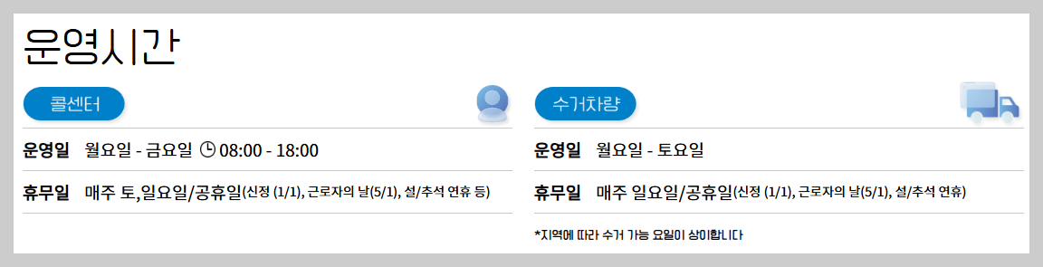 - 일부 지역은 오후 8시까지 연장 수거도 가능하니, 일정 선택 시 참고하시면 좋습니다.
