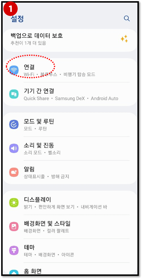 1) 휴대폰에서 [설정]앱을 실행합니다.