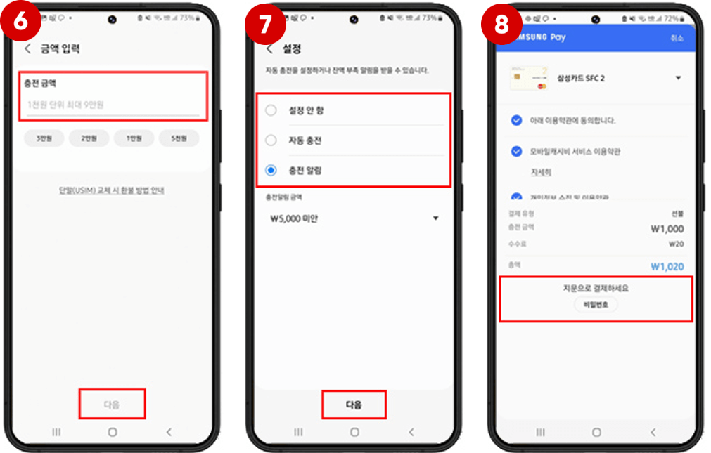 : 삼성페이 가입후 안드로이드 12 OS 이상 '캐시비'만 사용 가능합니다.