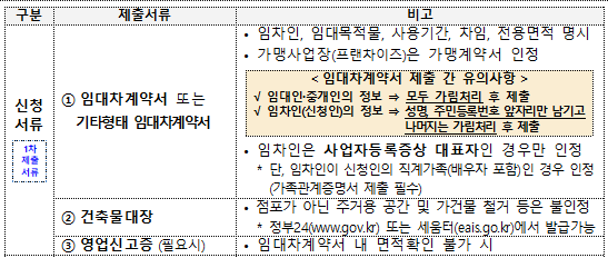 또한 사업을 60일 이상 운영했고, 유상 임대차 계약을 체결하여 임대료를 지불한 이력이 있어야 신청 가능합니다.