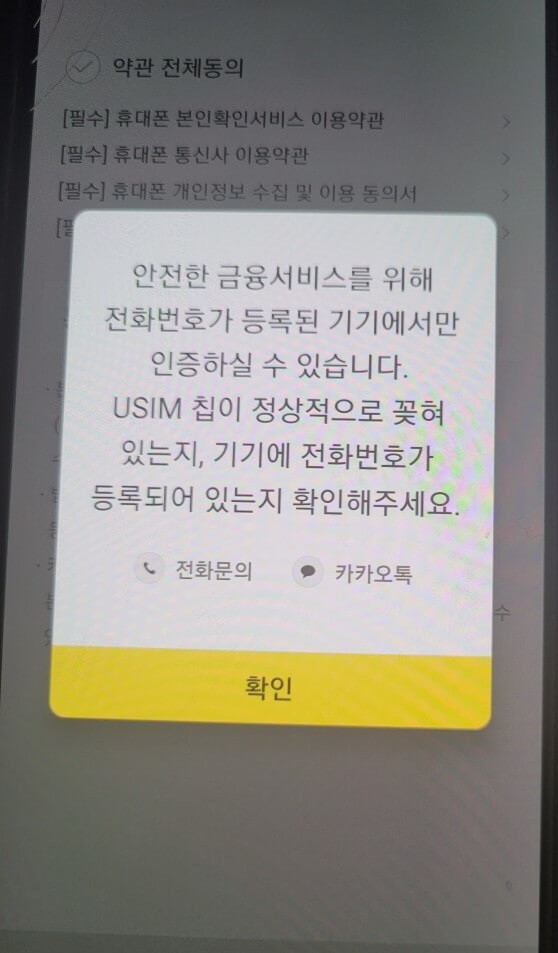 ✔ 카카오뱅크 계좌개설 시 유심칩(기기등록) 오류는 카카오뱅크가 아닌 나의 통신사에 문의하자