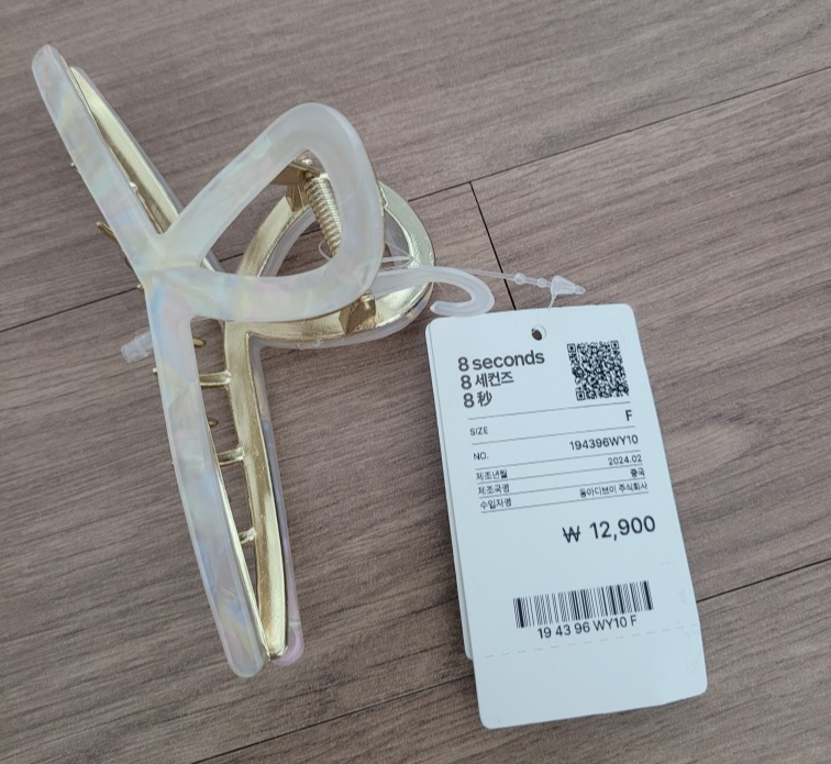 포인트를 어떻게 사용해야하는지 알고나니 이게 꽤 쏠쏠하더라고요. 에잇세컨즈 오프라인 매장에서 멤버십 포인트로 구입했던건 자개 집게핀은 아이보리색이었는데요. 가격이 12,900원이었는데 제가 보유하고 있던 포인트가 16,100원이 있어서 포인트로 구매를 하니까 공짜로 집게핀을 득템할 수 있었습니다.