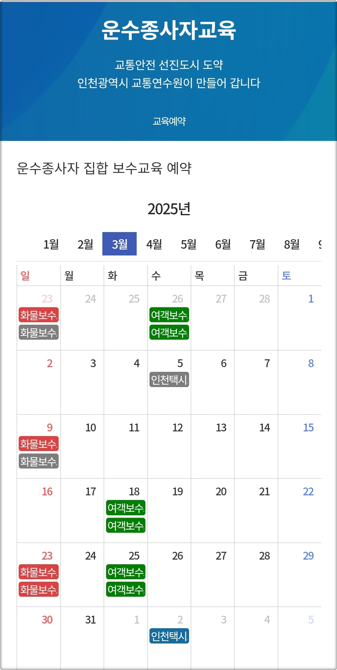 (인천 교통연수원 / 여객 보수교육 예약접수)