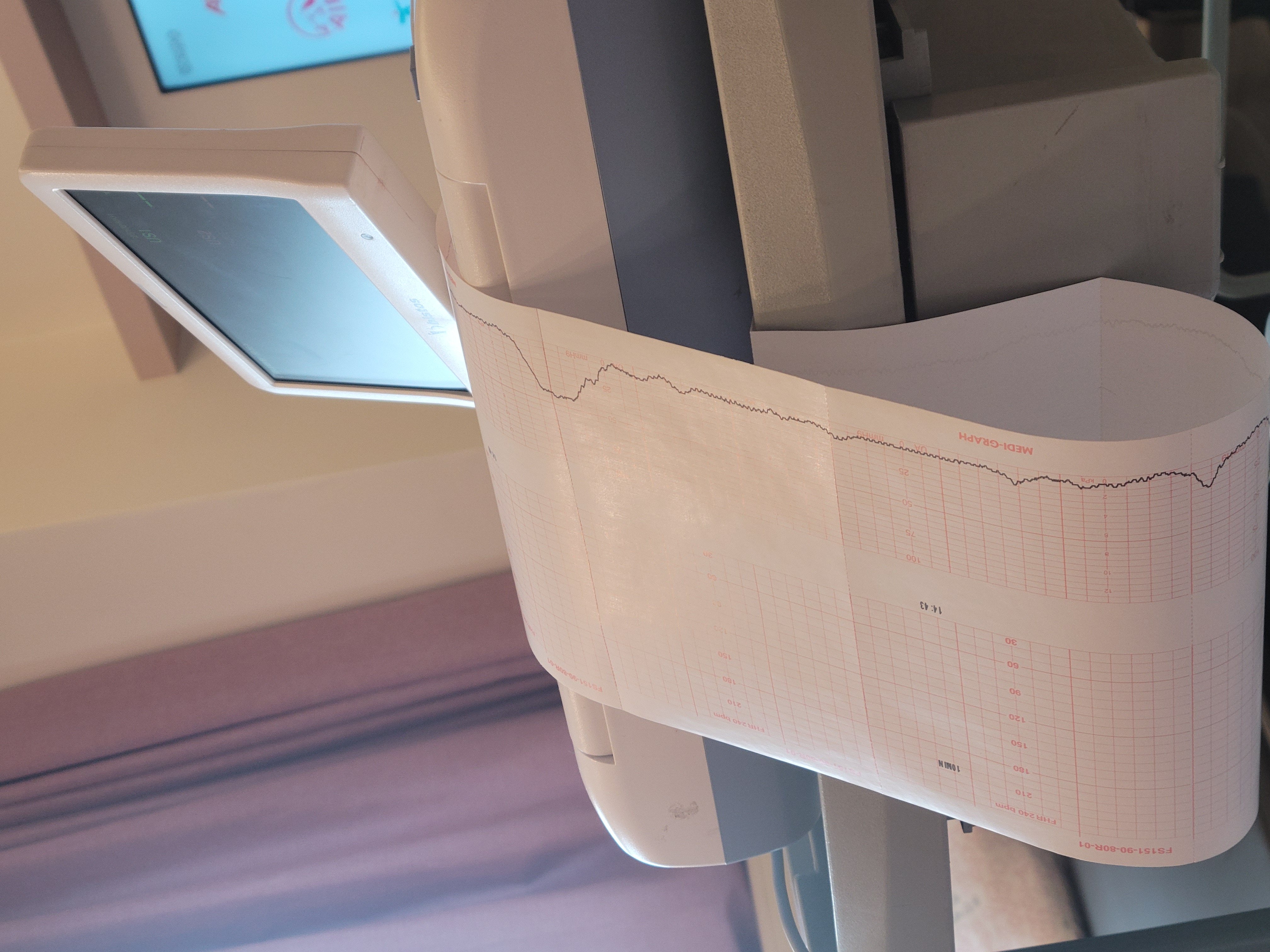 급히 간호사를 호출해 아기 심박수를 체크했는데, 다행히 140대가 나와서 안심했다.