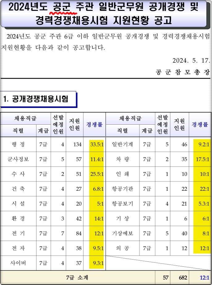2024년도 군무원 공군 경쟁률입니다.