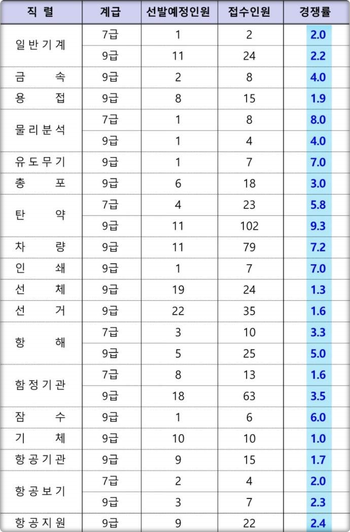 전직렬 선발인원과 공채 경쟁률을 아래에서 확인하시기 바랍니다. 공채가 아닌 경채(경력)경쟁률은 "여기서" 확인 가능합니다.