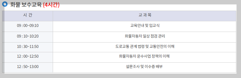 화물보수교육 시간은 기본적으로 연 4시간입니다.