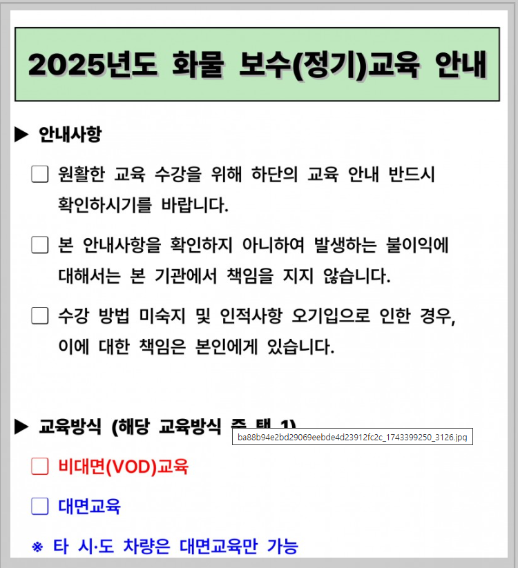 특히 지역마다 교육 방식이 다르기 때문에, 미리 화물보수교육일정을 확인해두는 것이 가장 중요합니다.