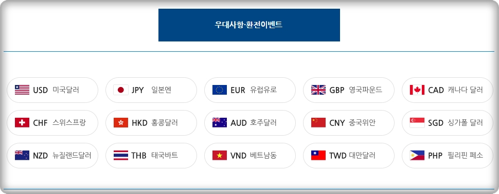 달러처럼 메이저 통화는 대부분 비슷하니 편한 곳 이용하시고, 엔화나 유로는 시간대 확인, 기타 통화는 우대율 높은 은행을 꼭 선택하세요.