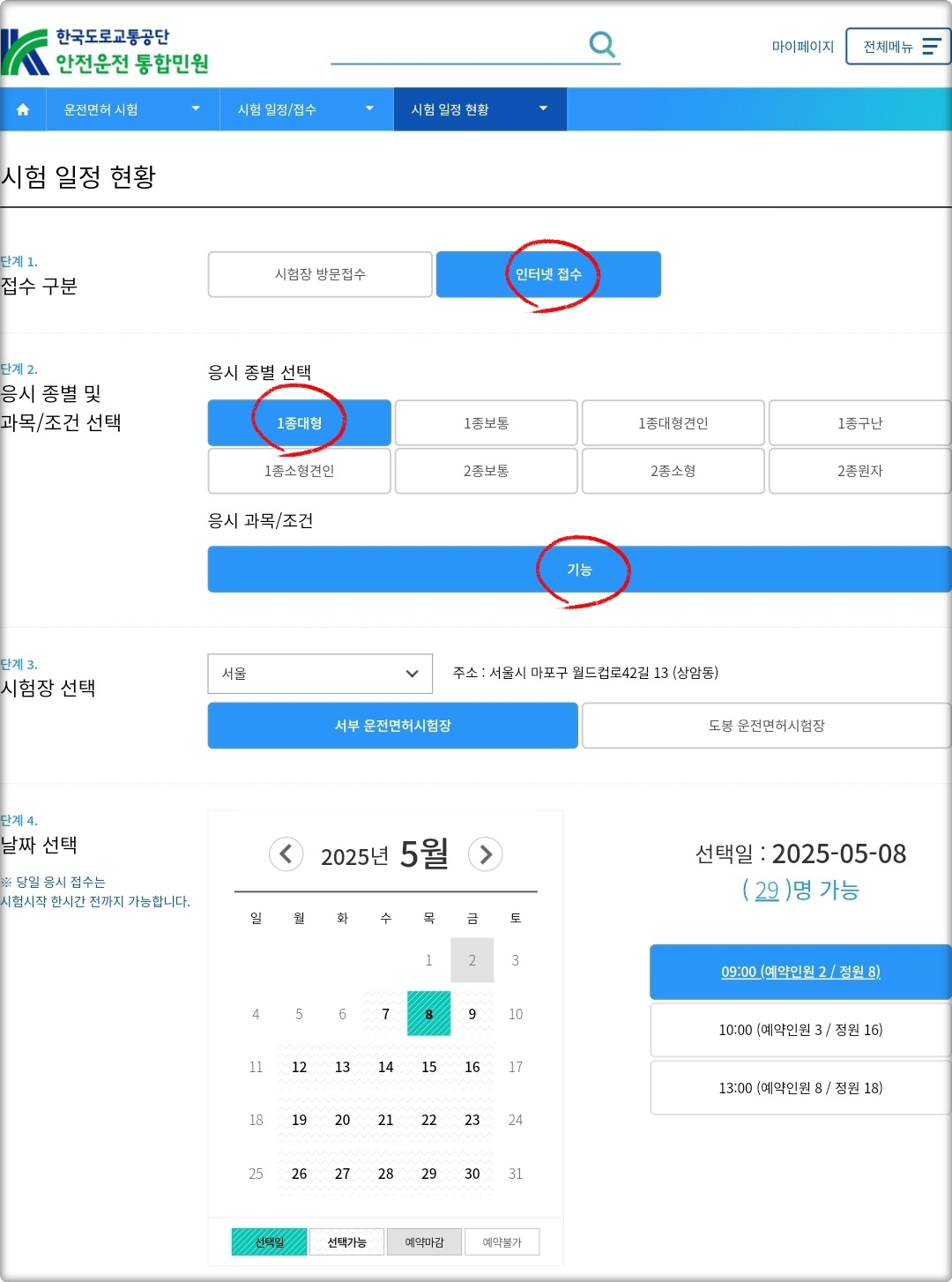 또 대기시간이 길거나 원하는 날짜에 시험을 못 볼 수도 있기 때문에 가능하면 온라인으로 미리 예약하고 가는 것이 좋습니다.