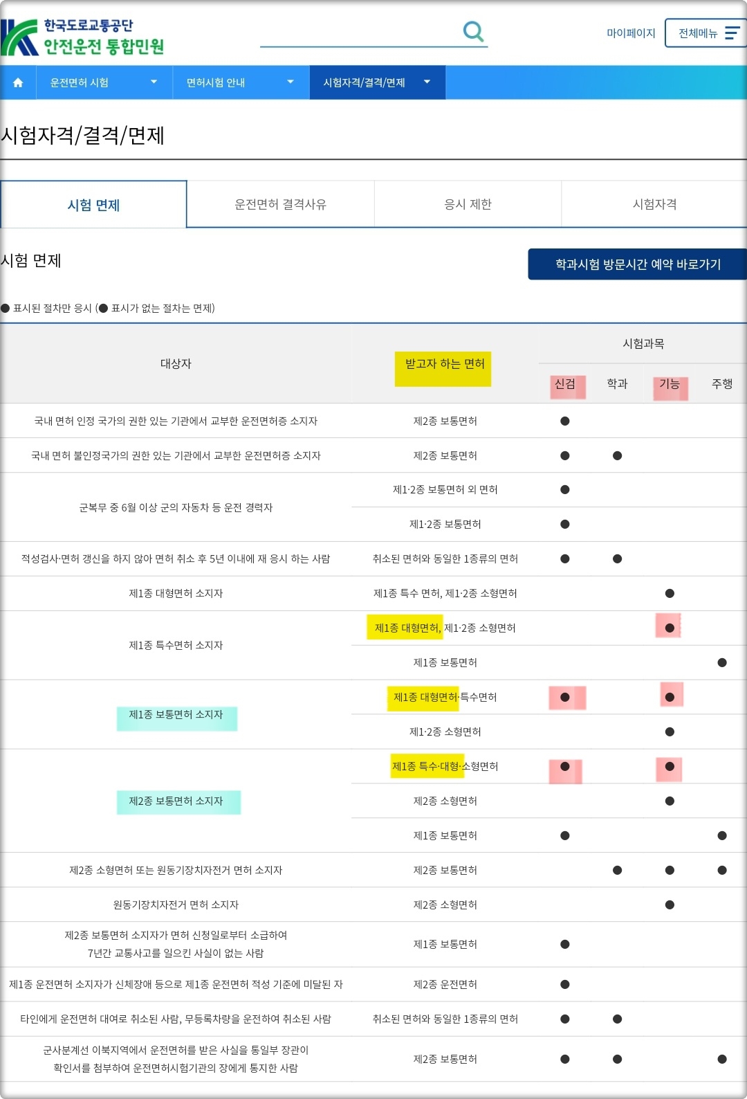특히 서울 강남, 강서 지역 면허시험장처럼 수요가 많은 곳임에도 대형면허 시험이 불가능한 시험장이 있어요.