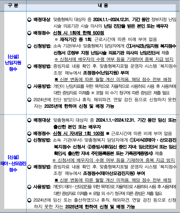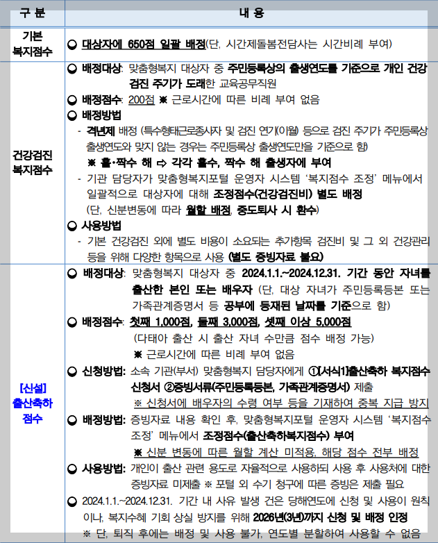 🔻🔻 2024년 복지점수 배정 내용(2)