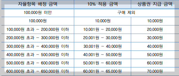 참고로, 자율항목의 10%는 온누리 상품권으로 지급됩니다.
