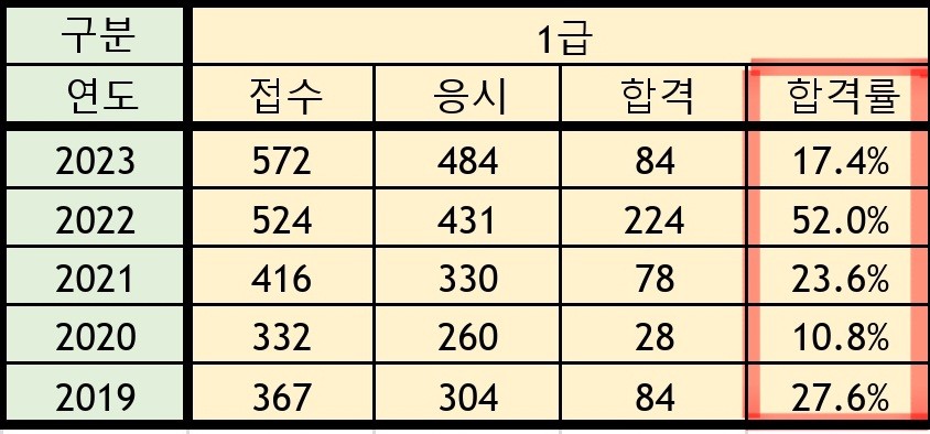 1급은 8월에만 시험을 치릅니다. (1년에 1번만 시행)