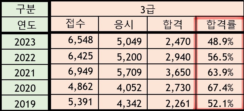 3. 유통관리사 5개년치 합격률