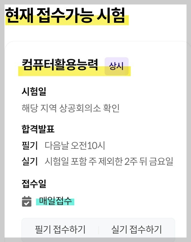 🔻🔻 컴퓨터활용능력 시험은 한국산업인력공단이 아닌 '대한상공회의소 자격평가사업단' 홈페이지에서 확인하실 수 있습니다. 원서접수와 시험과 관련된 자세한 정보도 대한상공회의소 자격평가사업단 홈페이지에서 보셔야 합니다.