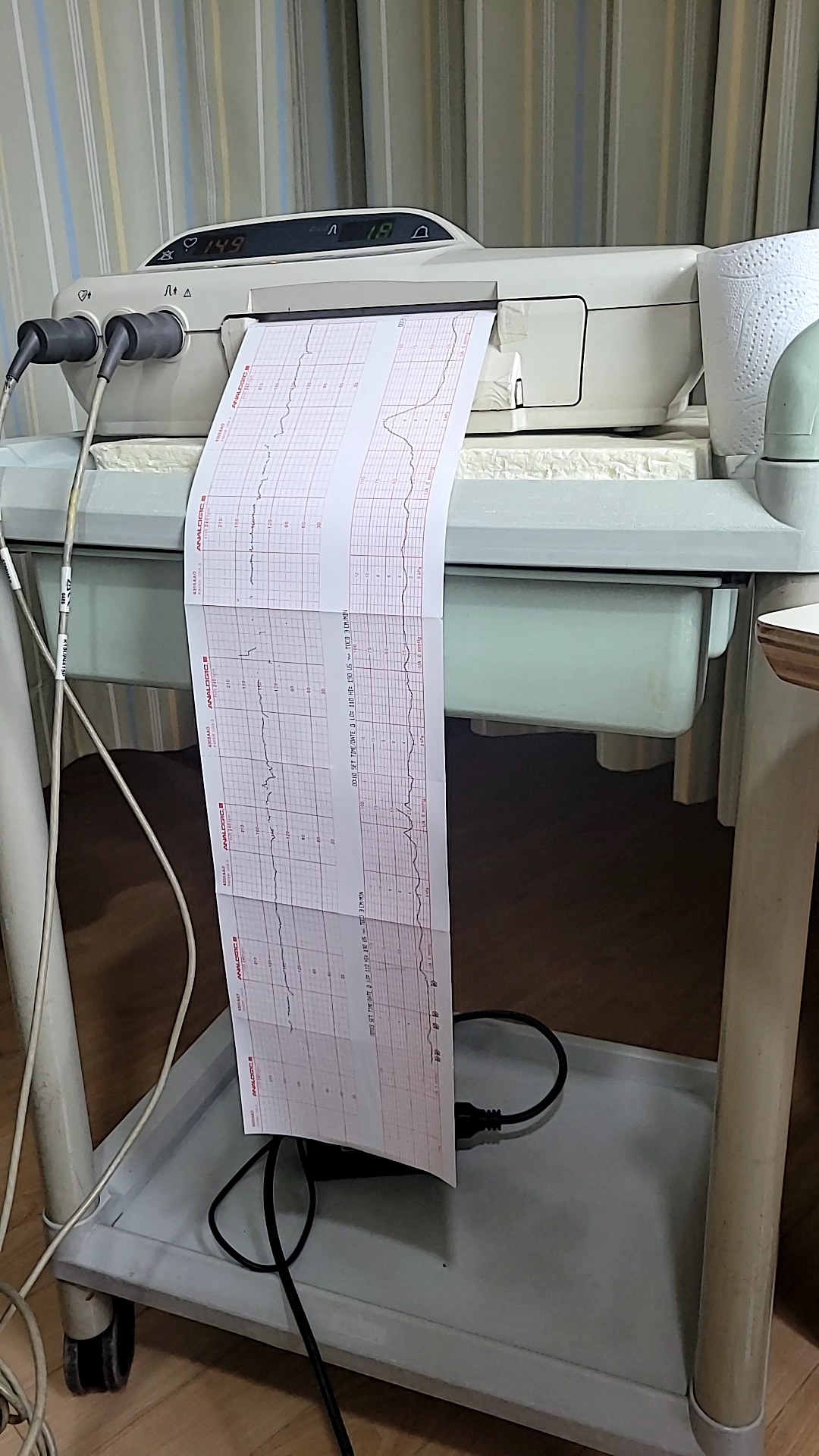 그렇게 수축검사를 받으며 현병원 원장님이랑 전화통화하며 신경을 썼더니 갑자기 또 치솟는 수축 그래프...