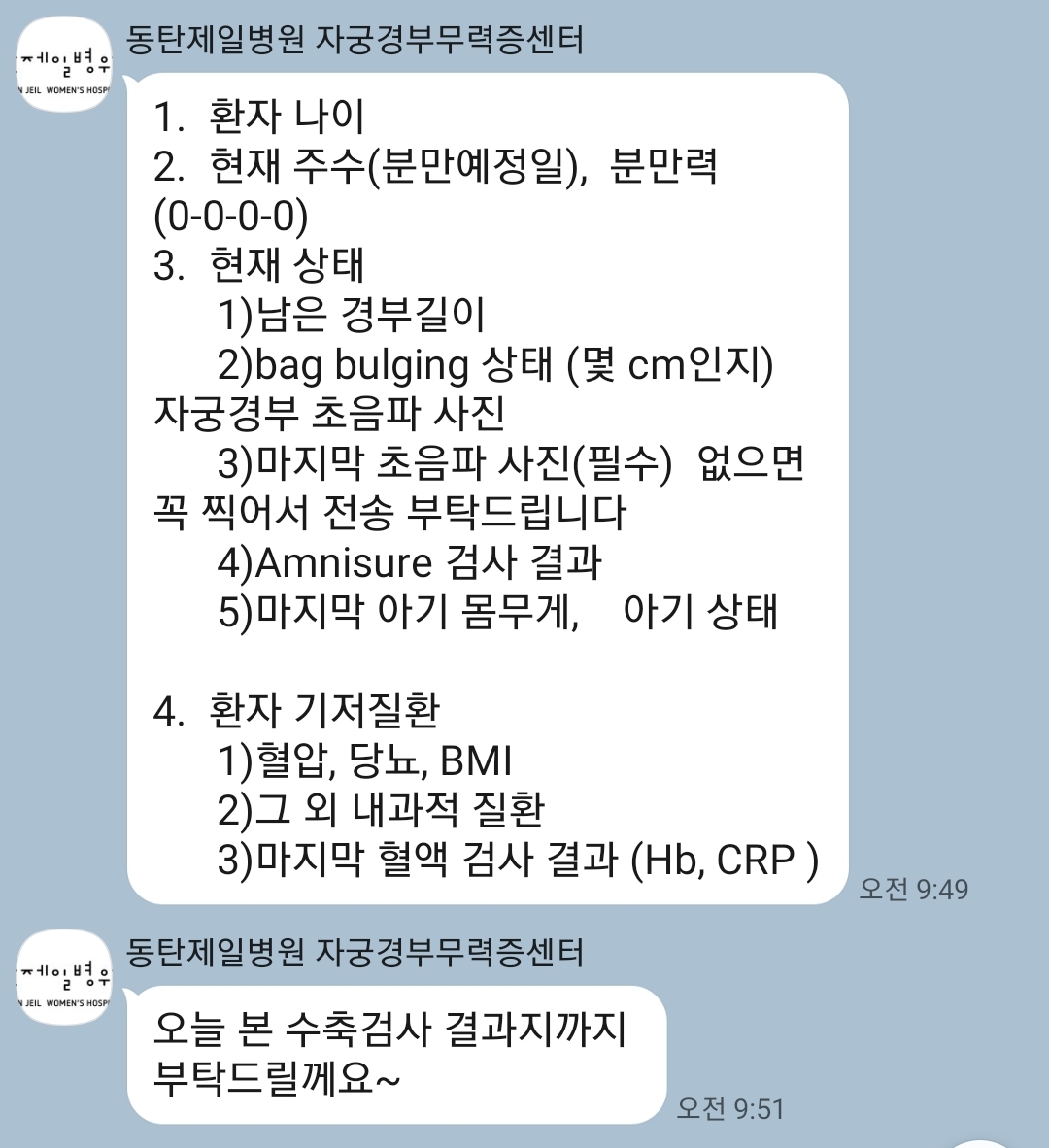 동탄진료 예약 확정을 위해 동제에서 요청한 자료가 있어서 포유문에 부탁을 드렸는데,
